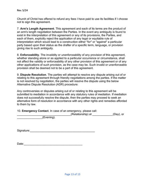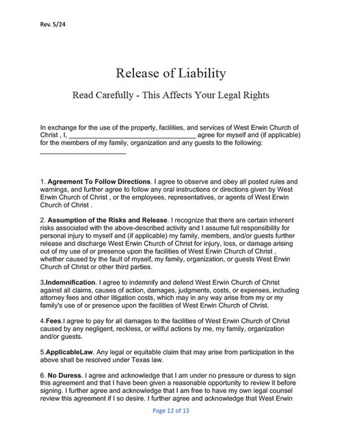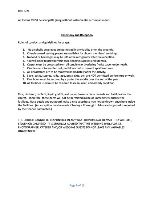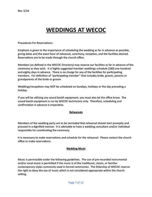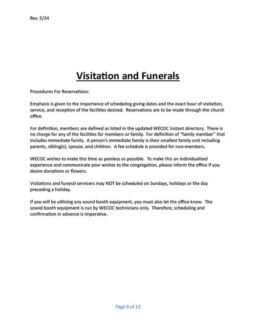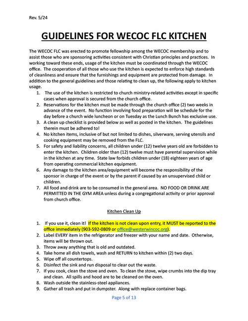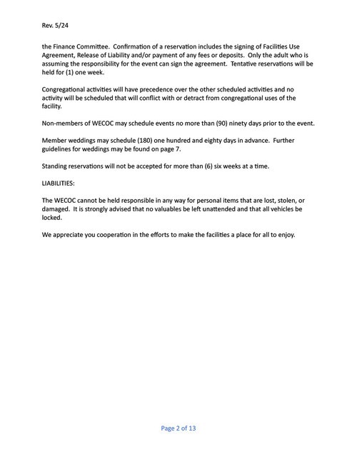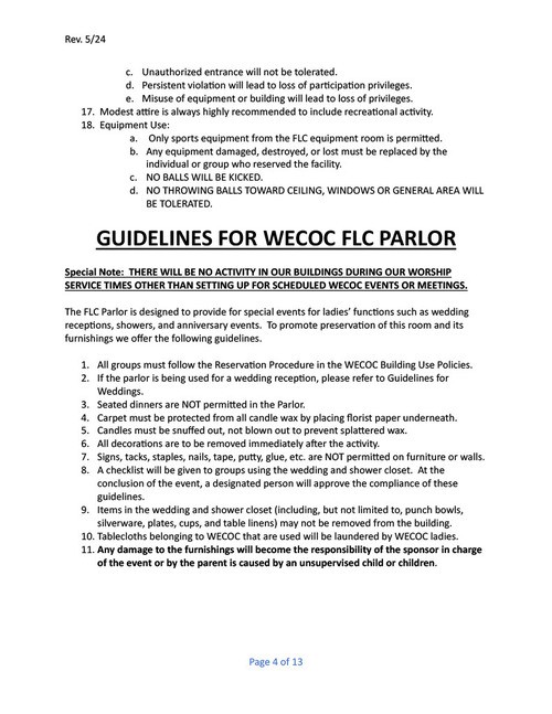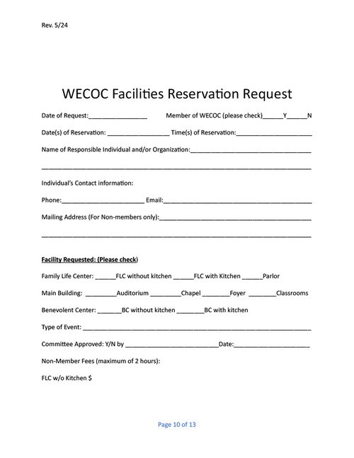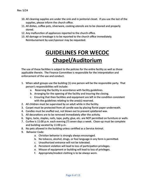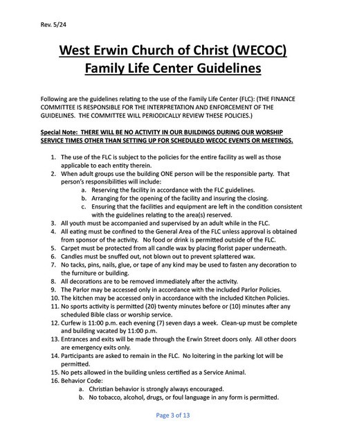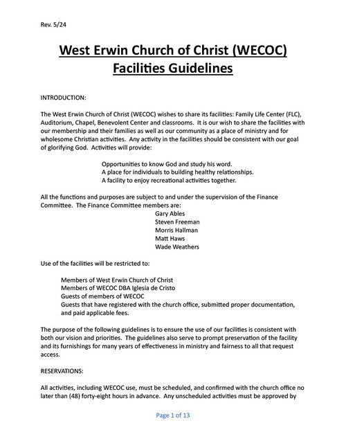 West Erwin Church of Christ Facility Guidelines